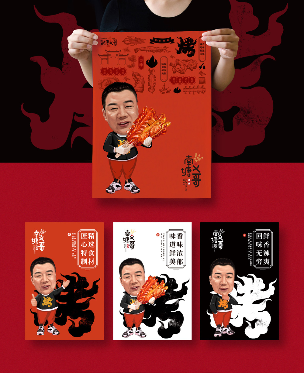 南塘義哥是享真味餐飲品牌旗下的燒烤品類,和大多數老字號特色餐飲遇到的問題一樣:味道至上但不注重形象,口碑相傳跟不上網紅美片,在南塘老街要求整體業(yè)態(tài)形象升級的大背景下,享真味餐飲委托智慧天成為其旗下品類做品牌形象的升級工作,以傳統(tǒng)底蘊創(chuàng)造出親切易懂的視覺語言,整體注重傳統(tǒng)餐飲的嚴肅性和品質感,同時以人的形象為基礎創(chuàng)造了親切友善的IP形象,讓品牌變的有故事、有溫度。